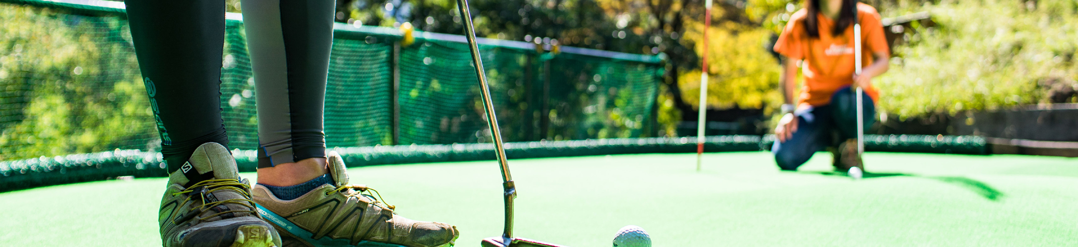 お履き物につきましては、スパイクシューズではご参加できませので、ご承知おきください。ヒールがある靴はダメではないのですが、施設内起伏があり、怪我の原因となりますので、オススメは致しません。